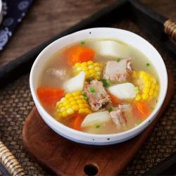 4.Peel the yam and cut it into pieces, cut the corn into small pieces, and peel the carrot and cut it into pieces