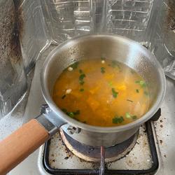 5.Add a little salt, add chopped green onion, and remove from the pot.