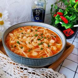 14.一一The nutritious and delicious tomato enoki mushroom and shrimp soup is ready