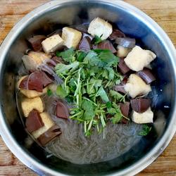 1. Sliced duck blood, shredded bean skin, soaked vermicelli in water, soaked soft beans, cut into cubes, chopped cilantro, chopped green onions Make old duck soup with ginger slices