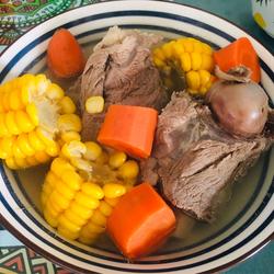 2.Simmer over low heat for an hour, then add corn and carrots and simmer for 30 minutes, and finally add salt to taste.
