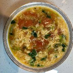 3. After boiling, add appropriate amount of salt to taste.Use a spoon to stir the water in three batches and add the egg liquid.Then add chopped green onion and coriander, stir, turn off the heat and take out the pot.Add sesame oil after taking out the pot
