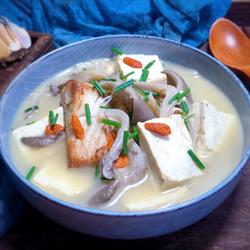 15.A delicious fish soup with mushrooms and tofu is just Done