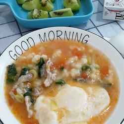 One tomato, two eggs, appropriate amount of flour mixed into dough, appropriate amount of lean meat slices ( ) | Edible oil, chopped green onion, soy sauce, thirteen spices, salt, chopped green vegetables, sesame oil ( ) |