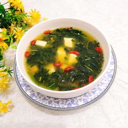 1.Prepare watered sesame leaves, tofu, and wolfberry