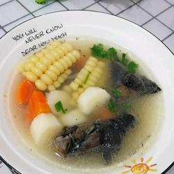 5. After releasing the pressure, add the yam, corn segments and carrot pieces.