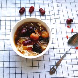 8.Put enough water into the casserole, add white fungus, fungus, and jujube And longan meat.