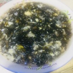 5. Boil water and add dried seaweed, eggs and shrimp skin and mix well