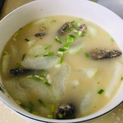 8. When the fish soup is simmered until milky white, add the winter melon slices.