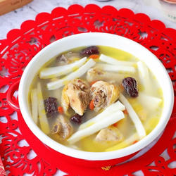 5. Start a new pot Add chicken pieces, coconut meat, red dates, and water