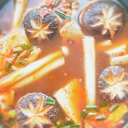 9. Boil again, add shiitake mushrooms and white jade mushrooms,