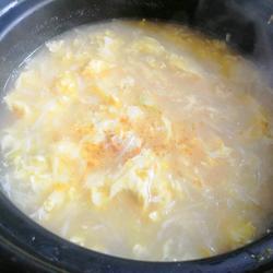 10. After the pot is boiled, turn off the heat, pour in the egg liquid, and simmer until the eggs are set.After opening it again, season it with an appropriate amount of salt, and you can also add some sesame oil!