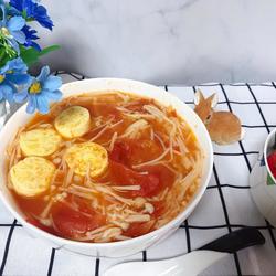 8.Sour and sweet The tomato and enoki mushroom tofu soup is completed
