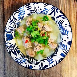 7. When the winter melon becomes translucent, squeeze out the meatballs, simmer some for 7.8 minutes, add Season with a little salt and chicken essence.