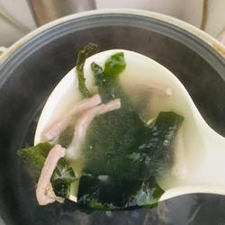 1. Soak wakame in boiling water for about 10 minutes and rinse..Cut the lean meat into shreds, cut the onions and ginger into small pieces and set aside.