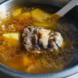 Cook in pressure cooker for 20 minutes.Then put the radish.Tomato market.onion.Boil the potatoes for 20 minutes.If you like your meat "rotten".The time can be longer
