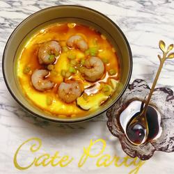 4.Add shrimp and chopped green onion Place on plate and continue steaming for 5 minutes