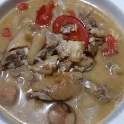 4.Put all steps 1.2.3 into the electric pressure cooker! Add appropriate amount of water and press the button to the tendon type!