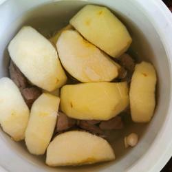 2. Cut the apple into pieces, soak the southern and northern apricots in water, and cut into two pieces of ginger