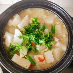 4. Stew for four or five points.Add corn segments, white radish and wolfberry and stew for half over medium heat.Cook for an hour, add salt, chicken essence, coriander and chopped green onion, stir and serve