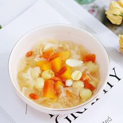 8.The nourishing papaya, tremella, lotus seed and lily soup is finished.