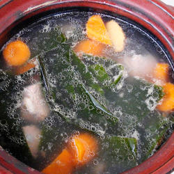 The chicken legs are used to enhance the flavor of the soup, and the kelp is fresh and green.The soup is fragrant and delicious.The short ribs are soft, glutinous and smooth, with a good taste.