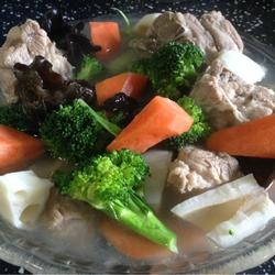 4. Add water to the pot, add the ribs, add aniseed, onion, ginger and cooking wine Stew until 8 mature, add salt and vegetables.