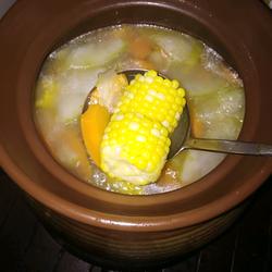 1. Pork (you can drain the water first to remove the blood), corn and carrots, cut them into pieces and put them in the pot.Heat appropriate amount of water