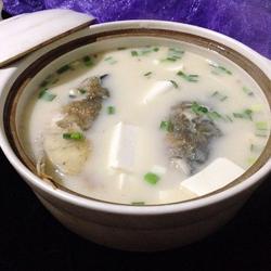 8.Pour the fish head soup into a casserole and garnish with green garlic.