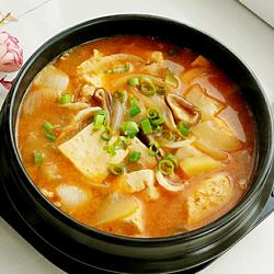 The best choice for meat is pork belly.You can add beef slices, or you can add seafood instead of meat.The biggest advantage of Korean food is the diversity of ingredients and the freedom to choose.This pot I have is a large pot, so I control the amount of ingredients myself.
