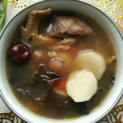 7. Put the yam and black fungus into the stewed pigeon soup, and add salt! Simmer until the yams are soft!
