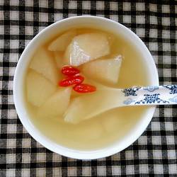 5 Finally, cook the pear flesh.How much you cook it depends on your taste.If you like the pear flesh to be crispy, you can cook it for a little while.If you like the pear flesh to be soft and rotten, you can cook it for a little longer.6.Put the wolfberry last.If you put it too early, the color, taste, and nutrition will not be good.