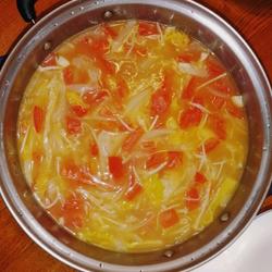 4.Add the reserved water and enoki mushrooms, the soup and ingredients in the pot begin to boil, and the seasonings are added last to ensure The ingredients are delicious