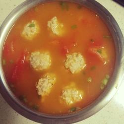 5. Stir-fry the tomatoes to make juice, add water and bring to a boil and add the meatballs