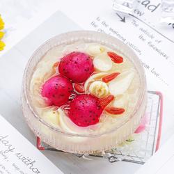 8. Pour the Tremella lotus seed soup into a bowl, add the dragon fruit and serve..