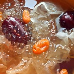 4.Pour tremella, red dates, wolfberry and rock sugar into a pot, add an appropriate amount of water and cook in a pressure cooker 8 minutes