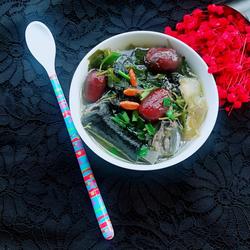 6. Bring to a boil over high heat, then turn to low heat Simmer for 30 minutes, then open the lid and pour in the Gotu Kola and continue to simmer for 15 minutes.Add chicken essence, green onions, and seasoning, and the fragrant and refreshing black-bone chicken soup is ready