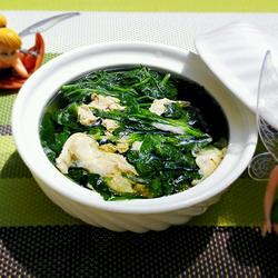 6.After the egg drop is formed, add the washed chrysanthemum brain leaves