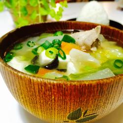 You can make the miso soup as you like The taste of any ingredients, vegetarian or meat, depends on your preference.The salt content of miso sauce is relatively high, so be careful not to put too much