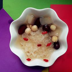 5.After soaking the white fungus, lotus seeds and red dates, add pears and rock sugar and simmer for 60 minutes (slow simmer)