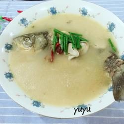 15. Take the soup bowl out of the pot and add the green onions., sprinkle with white pepper, the crucian carp in milk soup is cooked perfectly