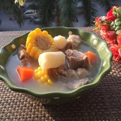 7.Add corn, carrot and yam and continue to simmer for an hour