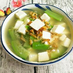 1.Peel and wash the loofah, dried seaweed Wash and soak in advance, a piece of tofu