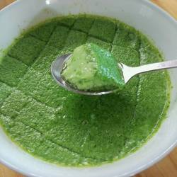 2. Blanch the spinach and chop it into a food processor.Then pour appropriate amount of water into the food processor.