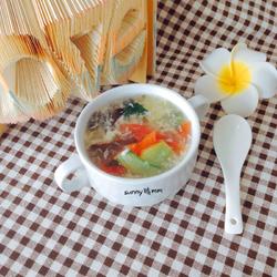 9. When the soup thickens, pour in the beaten eggs just now, stirring as well.Pour in while