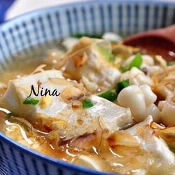 3. Then add the tofu cubes and snow white mushrooms and cook for 10-13 minutes until the ingredients are cooked.