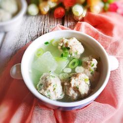 11. Cook the meatballs, cook the winter melon until transparent, season with pepper, salt and sesame oil.