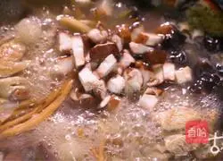 5. Put the mutton into the pot, add chicken stock, and put The side dishes are cooked