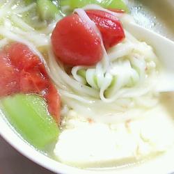 14.Baby's favorite noodle dinner, fruits and tomatoes cooked like this have high nutritional value, are light and delicious, and have fish soup to strengthen the spleen and appetizer.It is also a good product for treating colds, and of course it can also treat mumps.Luffa has the effect of treating mumps.