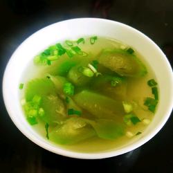 16.Pour the chicken soup luffa into a bowl and sprinkle with chopped green onion.